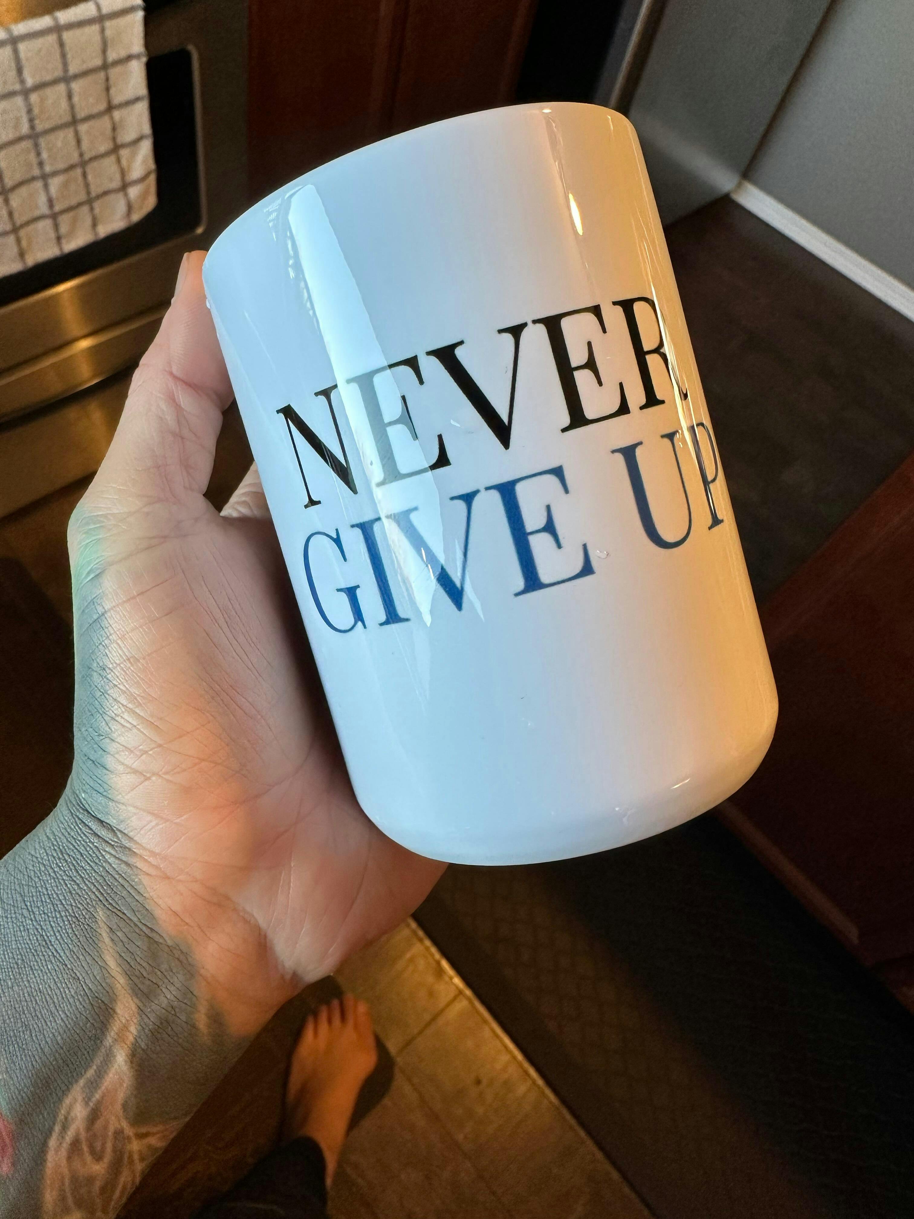 Whether you're journaling your goals or pushing through the workday, this motivational mug is your daily reminder to stay locked in and never fold under pressure. With bold, fade-proof text and a clean ceramic finish, it's more than a mug — it's a mindset.